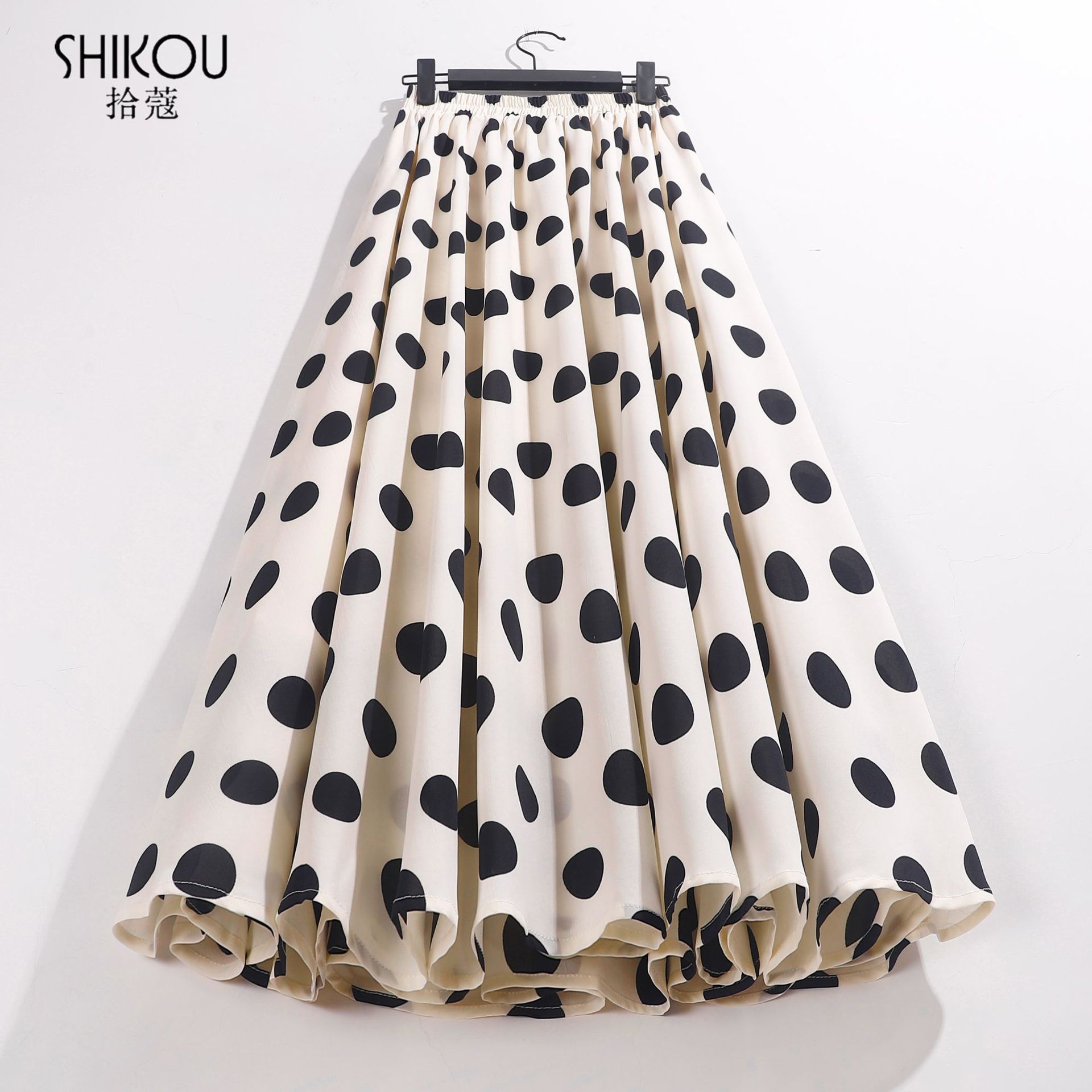 這裡買:顯瘦波點印花雪紡半身傘裙