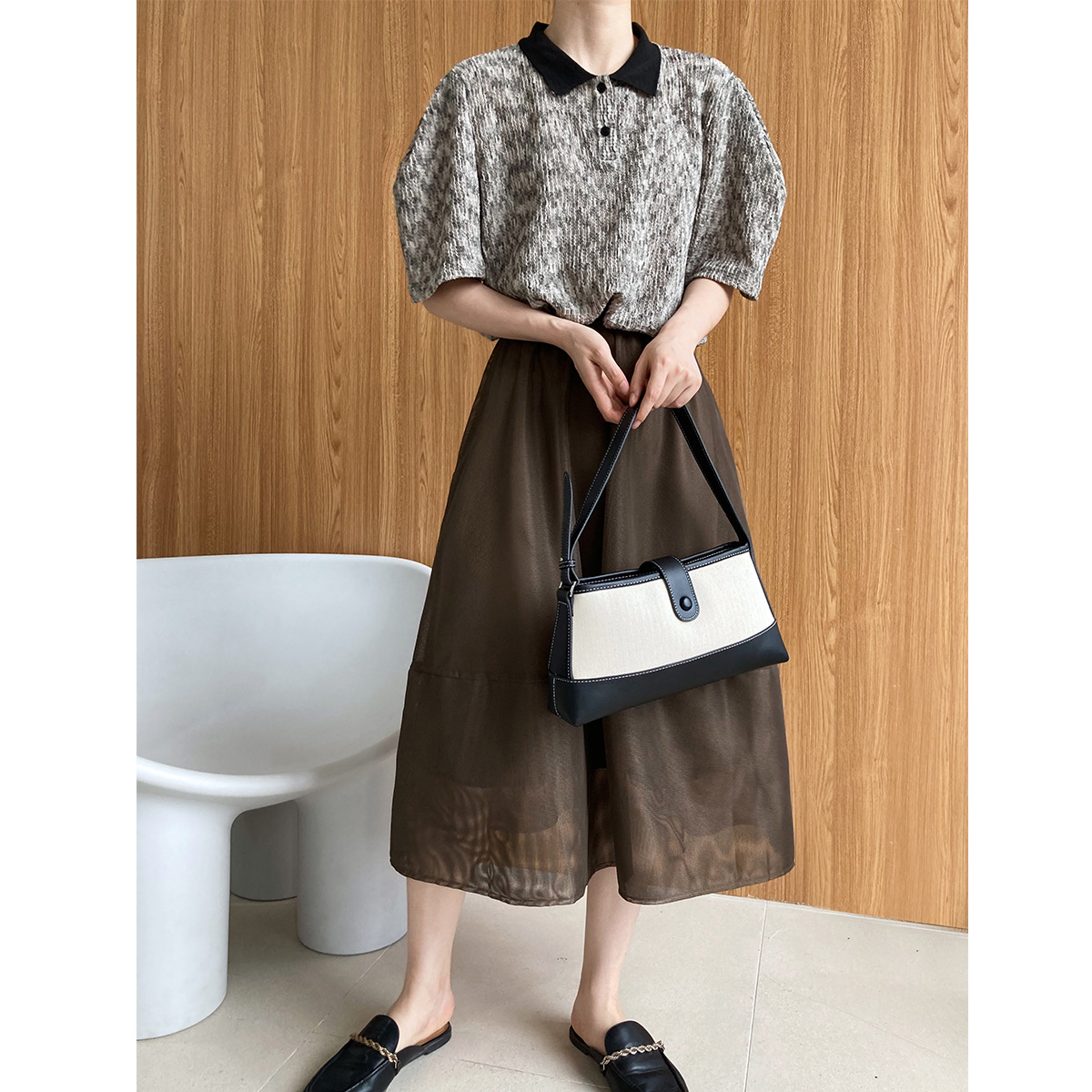 這裡買:高級感雪紡蓬蓬網紗高腰半身A字裙