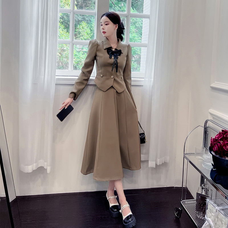時尚名媛氣質顯瘦外套高腰半身長裙兩件式套裝