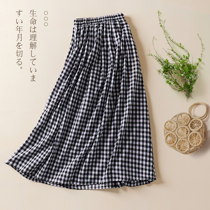 文藝復古長袖內搭上衣+毛呢格子半身長裙兩件式套裝