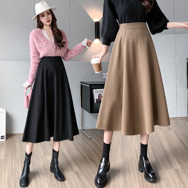 秋冬高腰顯瘦百搭毛呢半身A字裙